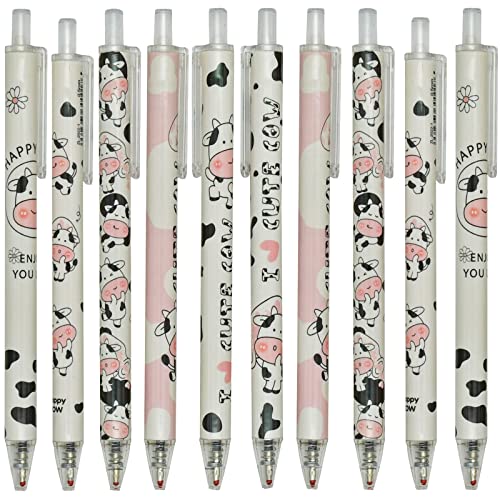 Maydahui かわいい 動物 牛 ノック式 ボールペン 12本セット 0.5mm 黑 インク おしゃれ ウシ ジェル ボールペン 可愛い 文房具 子供 学生 ギフト プレゼント