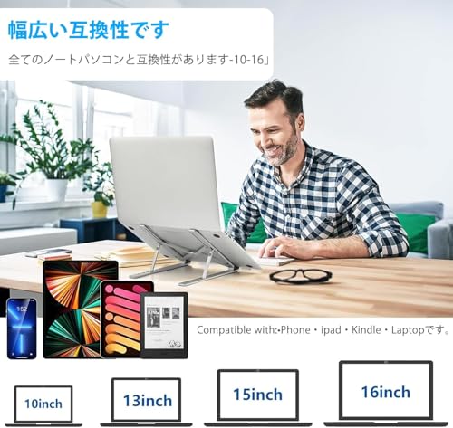ノートパソコン スタンド 折りたたみ式 パソコンスタンド 超軽量ポータブ合金製 7段階高さ調節可能 滑り止め PC/MacBook/ラップトップ/iPad/タブレット (金属) シルバ