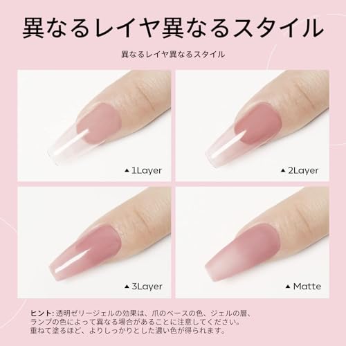 透明感のあるシアーカラー:ゼリーな質感にこだわったネイルジェル、透明感たっぷり。馴染みのよいカラーで、指先を上品に彩ります。通勤通学、結婚式、イベント、ハロウィンなど、様々場合に適用します