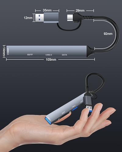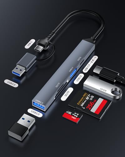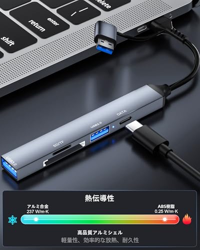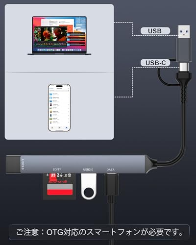 USB 3.0 ハブ MicroSD/SDカードリーダー Type-C & Type-A対応、TF/マイクロSDカードリーダー、USB-C データ転送、Type-C OTG対応、SDHC/SDXC/MMC/Micro SD/TF対応、Android スマホ タブレット/iPhone 15 16シリーズ/iPad Pro/MacBook Pro/Air/Windows PC対応