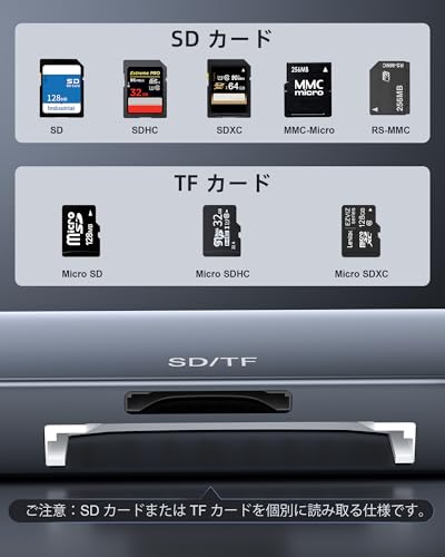 MicroSDカードリーダー & マルチカードリーダー対応: SDカード、microSDカードに幅広く対応したカードリーダー タイプc。マイクロsdカードリーダーやusb sdカードリーダーとしても使え、必要な場面で活躍するメモリーカードリーダーです。