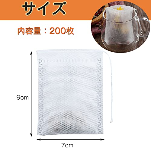 ティーバッグ 200枚入り 7cm*9cm 不織布 使い捨て の 袋 お茶パック ティーフィルターバッグ 巾着袋 ティーバッグ強力な浸透 調味料用袋 出汁用パック 便利