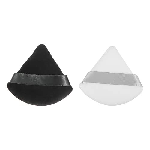 VOCOSTE ルースパウダーパフ フェイス ソフト トライアングルパフ ブレンダー 美容 メイクツール ショート ぬいぐるみ 2個 ブラック、ホワイト