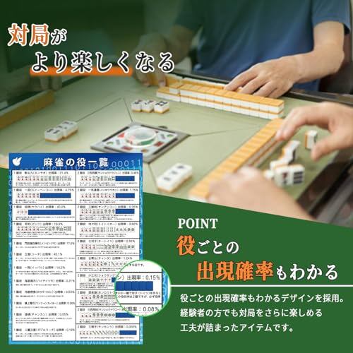 役ごとに、出現率を掲載しているのでより麻雀を楽しめます。またローカル・ルールも可能な範囲で掲載してあります。