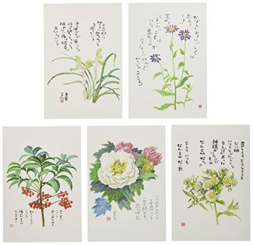 【枚数】5枚 愛されている(春蘭) こころ(ミヤコワスレ) 酔芙蓉(スイフヨウ) なんとかなるさ(ヒメジョオン) 赤い実(マンリョウ)