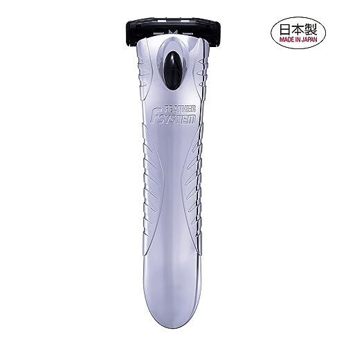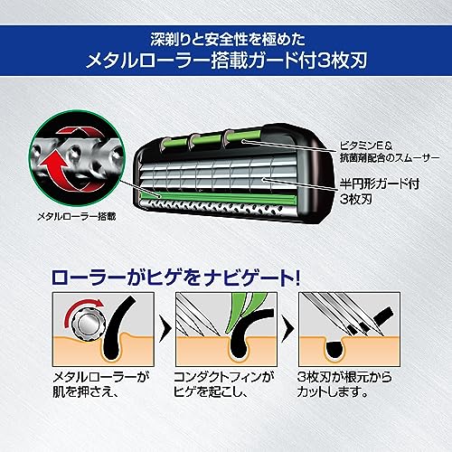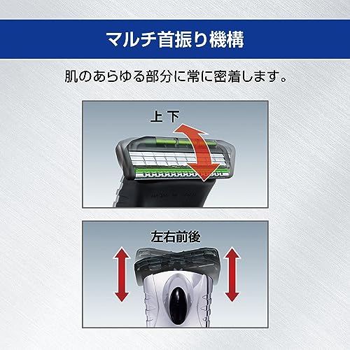 顔のどの部分にもフィットするマルチ首振り機構。ワンタッチで替刃の交換ができるリリースボタンが付いています。