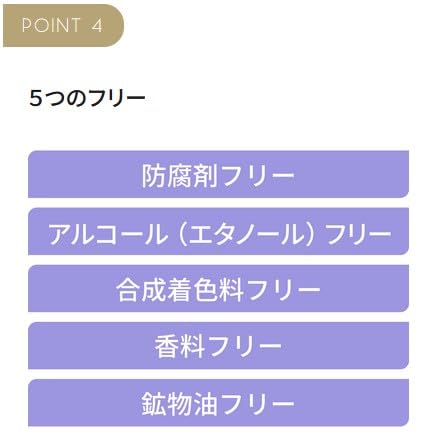 5つの(防腐剤、アルコール、着色料、香料、鉱物油)フリー
