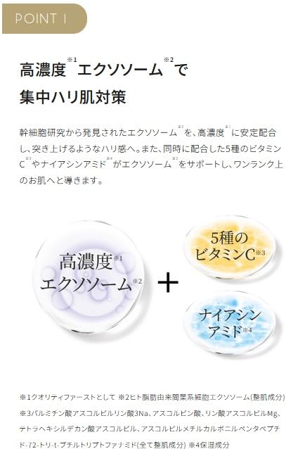 幹細胞研究から発見されたエクソソームを高濃度安定配合し、突き上げるようなハリ感へ