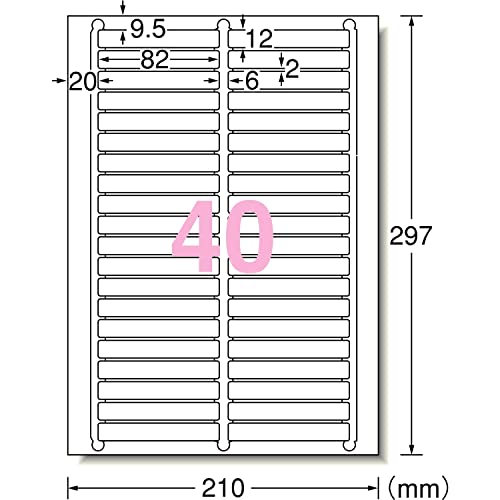 A4判 40面 四辺余白付 角丸/シートサイズ:297×210(297mm×210mm)/ラベルサイズ:12mm×82mm(2列×20段)