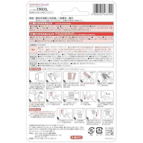 3M コマンド フック XXLサイズ 超強力 耐荷重6.8kg 1個 CMXXL