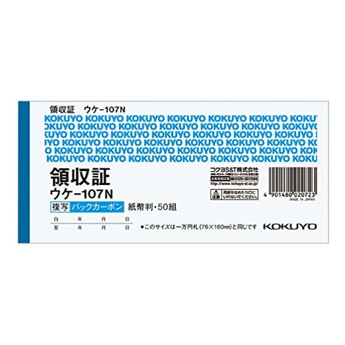 コクヨ(KOKUYO) BC複写伝票 領収書 バックカーボン 紙幣判横型横書 50組 ウケ-107N