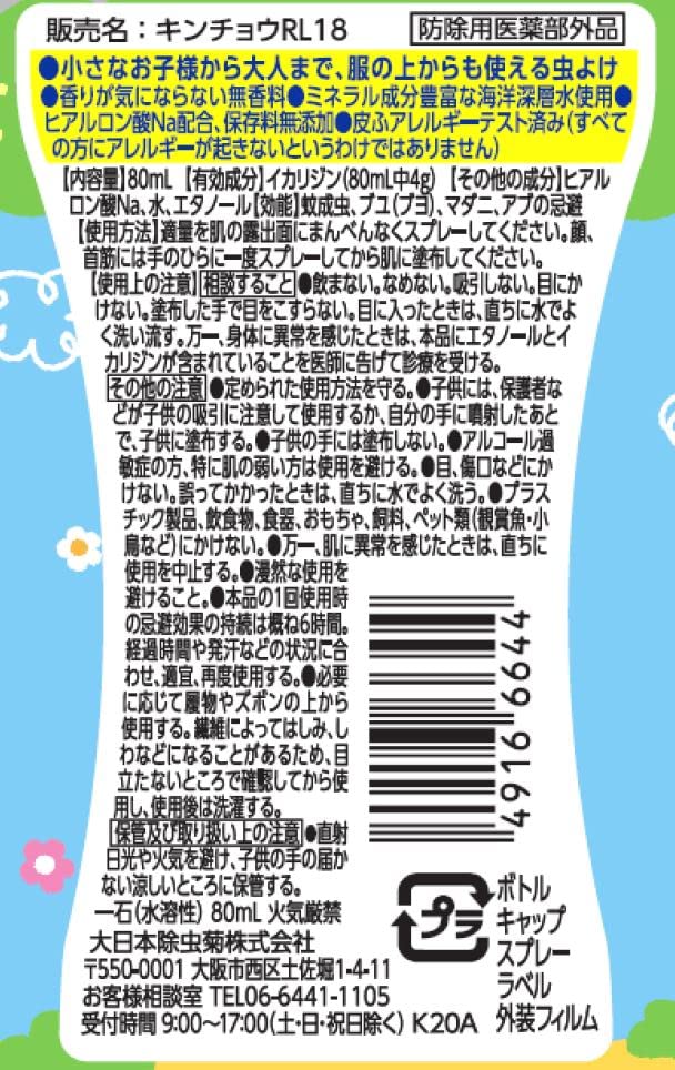 KINCHO プレシャワー お肌の虫除けスプレー DF(ディートフリー) 無香料 80ml イカリジン