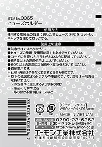 エーモン(amon) ヒューズホルダー DC12V・240W/DC24V・480W 20A(MAX) 3365