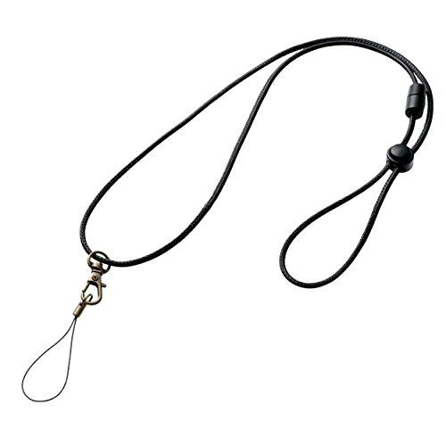 エレコム ストラップ ネックストラップ 携帯 スマホ 30cm-50cm長さ調節可能 [手帳型ケースなどと合わせやすいソフトレザー] 丸紐タイプ ブラック P-STN04BK