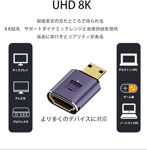 LeTradeJP 換アダプターケーブルミニ Mini HDMI(オス) to HDMI(メス) メス UHD延長ゴールドコンバーターアダプター 8K 60hz HDTV対応金メッキコネクタ 1個 (1)