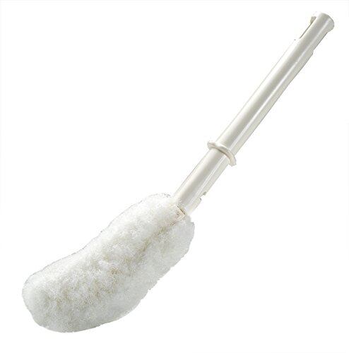 【クリーナー部分】柔らかく360度繊維で覆われており、便器のふち裏や水たまりの奥が洗いやすいように先端をカーブさせています。水がはねません。