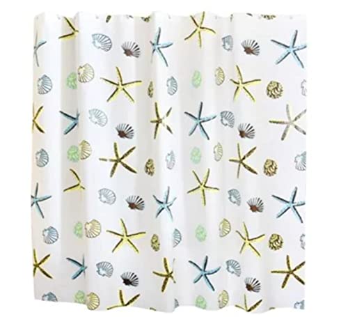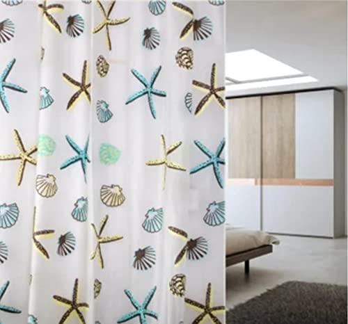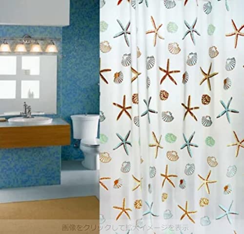 シャワーカーテン 防水防カビ加工 カーテンリング付属 貝とヒトデ A021009AA