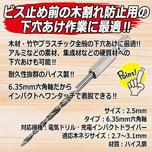 SK11(エスケー11) 六角軸 ハイス木工用 下穴ドリル 2.5mm
