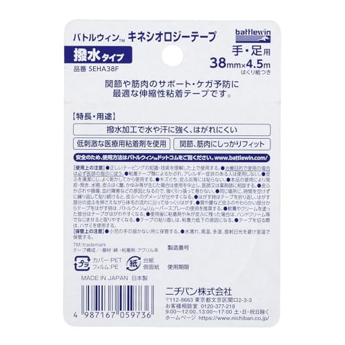 ニチバン バトルウィンセラポアテープ撥水(キネシオロジーテープ) 38mm×4.5m(伸長時) 1巻入り