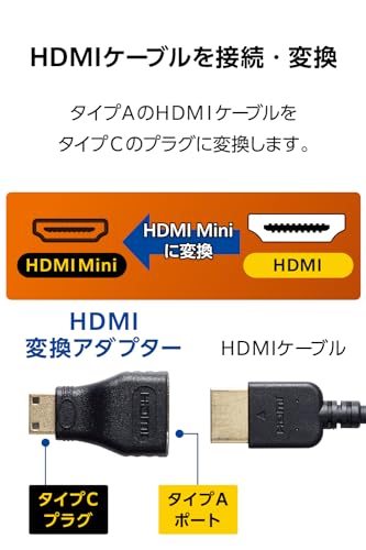 HDMIポート(タイプA)とHDMI Miniプラグ(タイプC)を変換し接続が可能です。