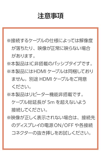 本製品はリピーター機能非搭載です。ケーブル総延長が5mを超えないよう接続してください。