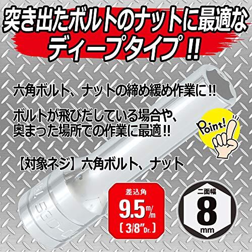 SK11(エスケー11) 六角ディープソケット 差込角 9.5mm (3/8インチ) 8mm S3D-08