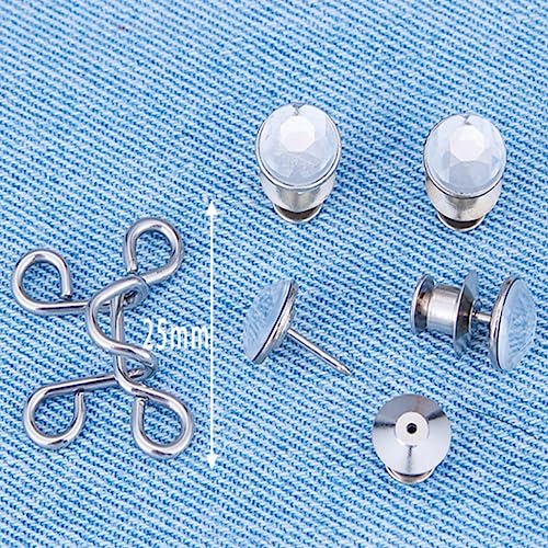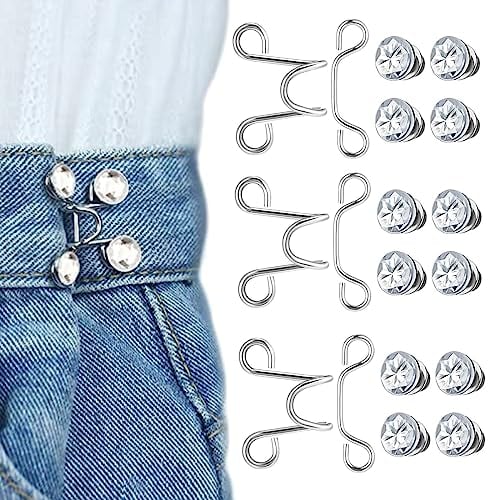 YFFSFDC【ウエスト調整ボタン27mm3セット】ジーンズ 調整 リベット付き 縫い目ない ウエストバックル ゆるゆるのジーンズ/ズボン/スカート/Tシャツ/パーカーなどを調節する取り外し可能ボタン 調節可能 交換用 (ホワイト、ラインストーン)