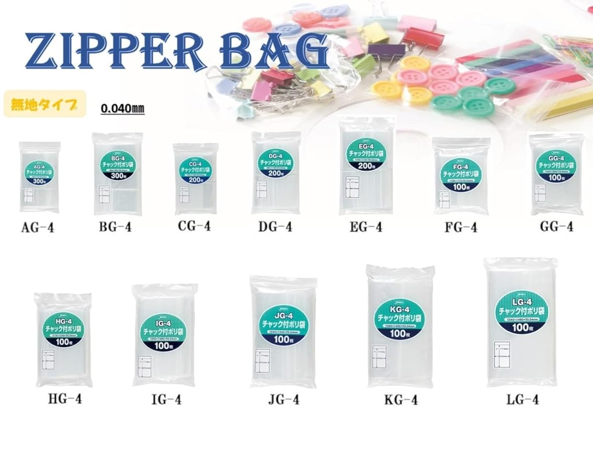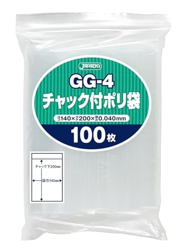 ジャパックス チャック付きポリ袋 透明 縦20cm×横14cm×厚さ0.04㎜ 小物の小分けから書類の整理保管に GG-4 100枚入