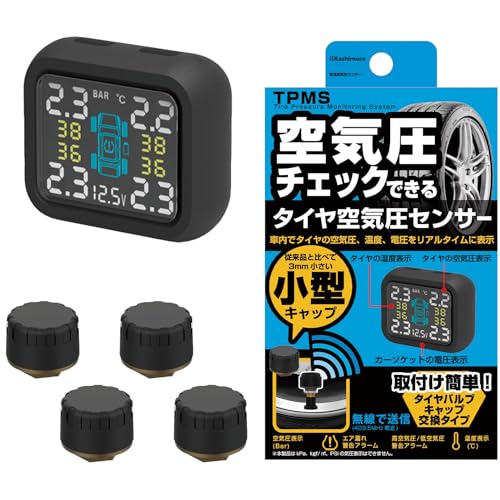 カシムラ 車内でタイヤの空気圧、温度をチェックできる 空気圧センサーの小型タイプ NKD-258