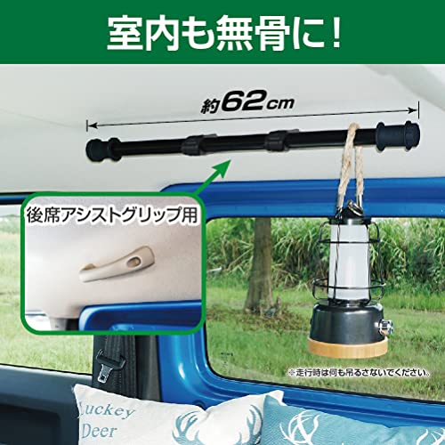 LEDランタンやハンガーなどを掛けられるので車中泊の際に便利です。