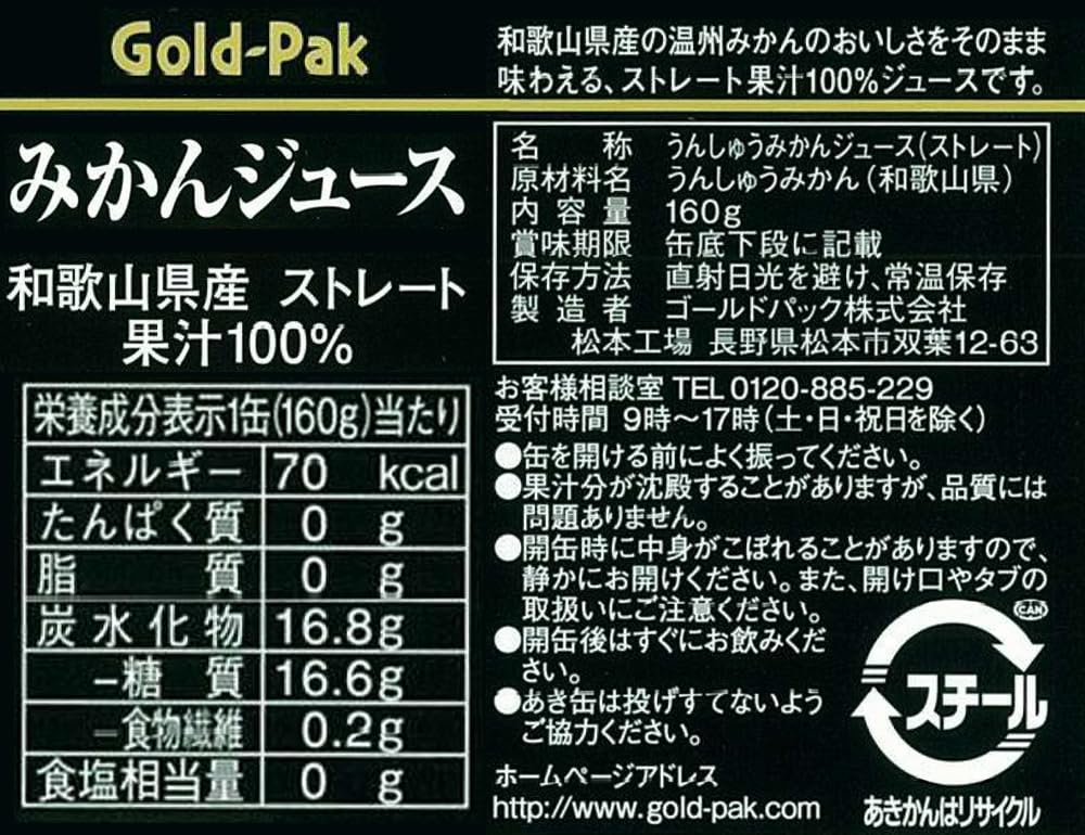 ゴールドパック 国産みかんジュース(ストレート) 160g×20本