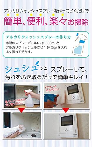 【高い洗浄力と幅広い用途】重曹よりもアルカリ度が高く、衣類のエリや袖の黄ばみ、レンジ周りの油汚れ、タンパク汚れや血液など、頑固な汚れもしっかり落とします。
