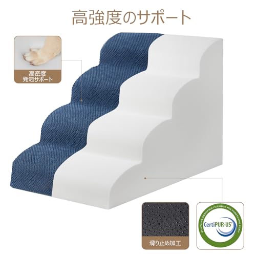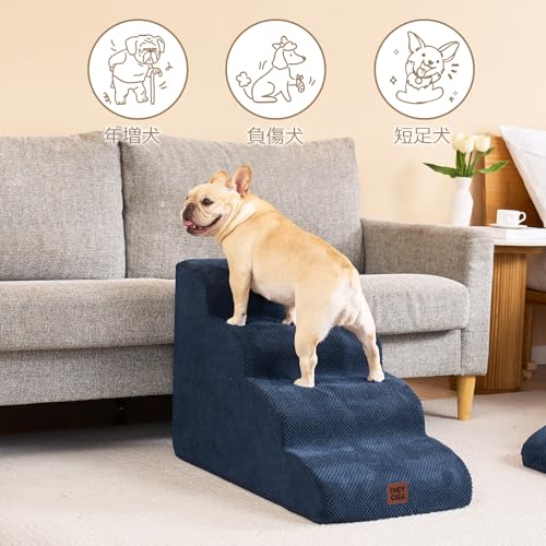 EHEYCIGA 犬 階段 ステップ ペット階段 ドッグステップ 犬 スロープ 高密度 滑り止め付き 安定性 カバー取り外し可能 洗える 小型犬適用(4段,ネイビー)