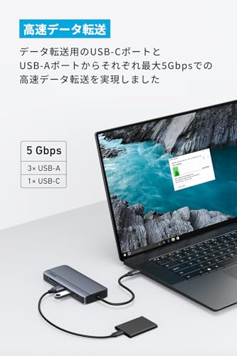 高速データ転送:USB-Cポートと3つのUSB-Aポートから最大5Gbpsでの高速データ転送を実現しました。高速データ転送で即座に同期することが可能です。