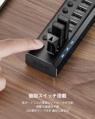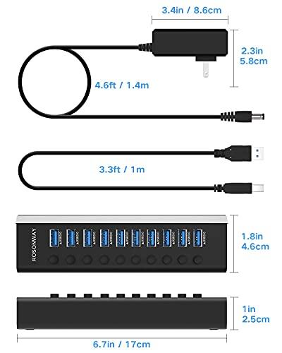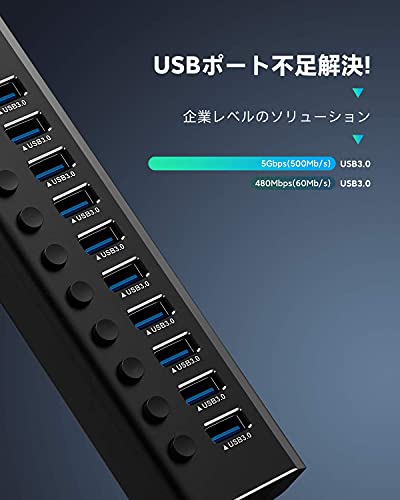 USB3.0ハブ 電源付き ROSONWAY 10ポート USBハブ アルミ製で アップ 5Gbps高速転送 セルフパワー USB拡張 独立スイッチ付 12V/3A ACアダプタ付き(RSH-A10)