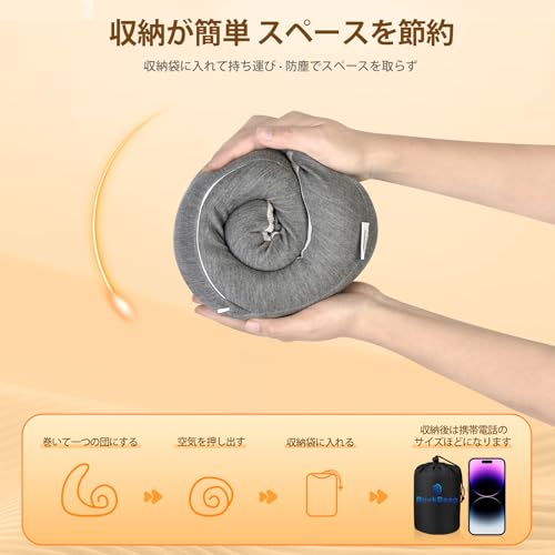【簡単に収納でき、軽量かつ携帯に便利です、携帯電話の重さにほぼ等しい】ネックピロー 飛行機 簡単な数歩ですぐ収納できます。収納袋には袋の口を締める用ボタンが付いており、より効果的にスペースを節約し、枕面を清潔に保つために。旅行中、携帯用の枕をスーツケースに取り付け、いつでも使える首枕 飛行機 約260g軽量かつ携帯に便利、軽快に世界中のあらゆる場所へお供します。