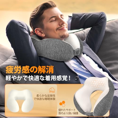 ネックピロー 飛行機 快適グッズ【業界最強の通気性とサポート性記憶フォーム】首枕 簡単に収納で 飛行機 枕首まくらカバー洗濯可 ネックピロー コンパクト 持ち運び便利 首枕 飛行機 海外旅行 便利グッズ トラベルピロー 飛行機/新幹線/バス/ソファ/オフィス/家/昼寝 に適用 携帯枕 職場の達人必携のツール