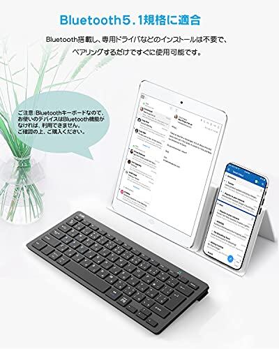✅【3台のデバイスとマルチペアリング・最新Bluetooth5.1に対応】 ご注意:本キーボードは全てのAndroid12の機種に対応できません。こちらは、bluetoothキーボードです。接続するデバイスにbluetoothがないと接続できません。ご確認ください。このワイヤレスキーボードは、パソコンやタブレット、スマートフォンなど、最大3台までのデバイスとペアリングできるマルチペアリング機能を新しく搭載しました。使用機器を切り替えはワンボタン。複数のデバイスを使っている方におすすめです。Bluetoothに対応したパソコンやタブレットであれば、レシーバー無しで接続できます。専用ドライバーなどのインストールは不要で、ペアリングするだけですぐに使用可能です。PC、iPad、iPhone、アンドロイド等に対応したBluetoothキーボードです。