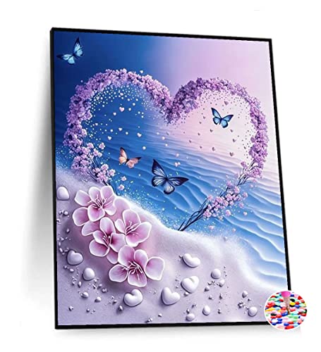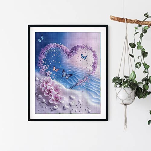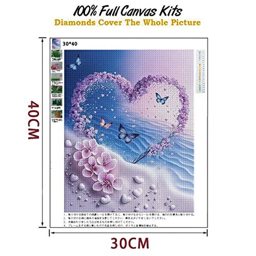 ダイヤモンドアート 四角 スクエア ダイヤモンドペインティング 手作り絵画 全面貼り付けタイプ ビーズアート 30x40cm 砂浜の花ハート