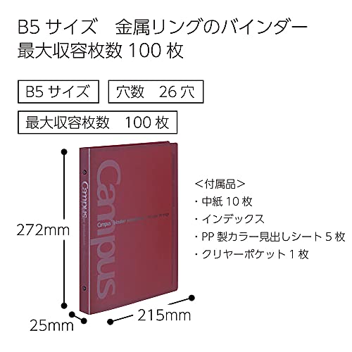 コクヨ(KOKUYO) ルーズリーフ バインダー キャンパス 金属リング B5 26穴 最大100枚 赤 ル-333R