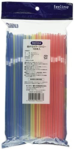 大和物産 ストロー マルチカラー 20cm FL 曲がるカラーストロー 100本入
