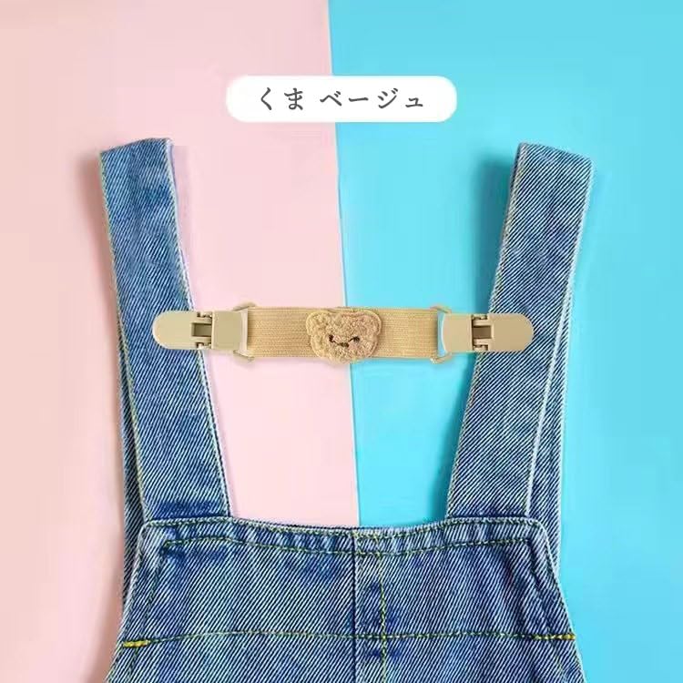 ズレ落ち防止 肩ひも サロペットクリップ ずれ キッズ 子供 女の子 ストラップ ずれ防止 オーバーオール くま ベージュ