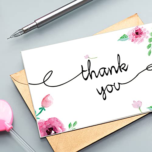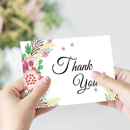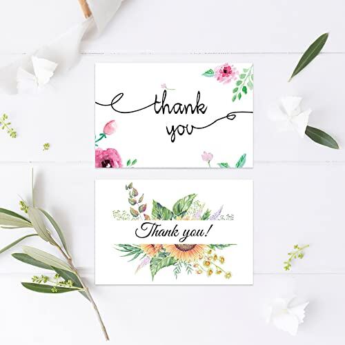 【シンプルなデザイン】安全で丈夫なプレミアム厚紙素材で作られ、畳んだり広げる形式のフォールディングカードです。Thank youの一言が、お花と共に表に印刷されて、内部には真っ白でメッセージや絵など自由に内容を書き込むことができます。
