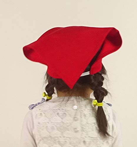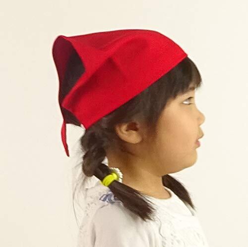 ひとりでかぶれるゴム付き子供用三角巾 無地(紺・赤・ピンク・水色・格子柄水色・格子柄ピンク・白) (赤)