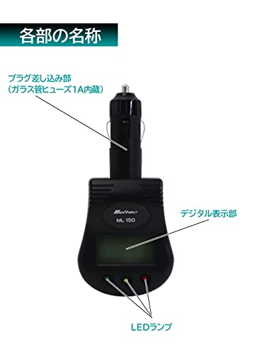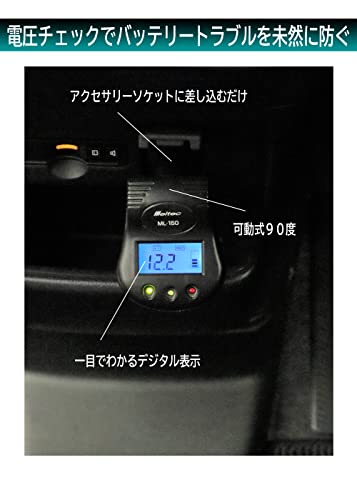 メルテック(meltec) バッテリーチェッカー 12/24V車兼用 (アクセサリーソケット差し込みタイプ) ML-150 ブラック