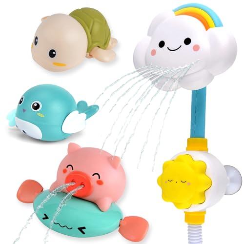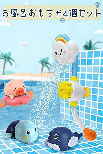 JUYEE お風呂 おもちゃ 赤ちゃん 水遊び おもちゃ 人気ランキング レインボーシャワー 豚 カメ イルカ 誕生日プレゼント 出産祝い(4点セット-色ランダム)