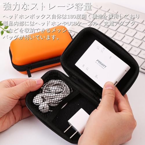 ヘッドホンボックス 保護ケース 収納 小型 コンパクト ボックス 付属品収納 薄型 携帯便利 セミハードボックス 耐衝撃 内側はメッシュバッグで、充電器やソケットなどのポータブルアクセサリーの収納にも使えます