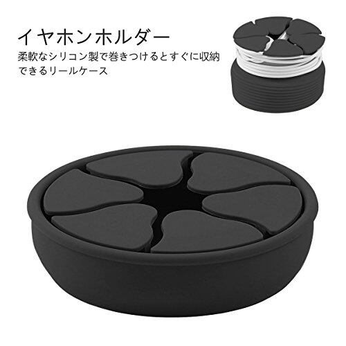イヤホン収納 イヤホンコード 巻き取りケース コードマネージャー コード収納 コードリール からまず ケーブルケース 絡まり防止 シリコン 超ソフト 小物 かわいい(ブラック)