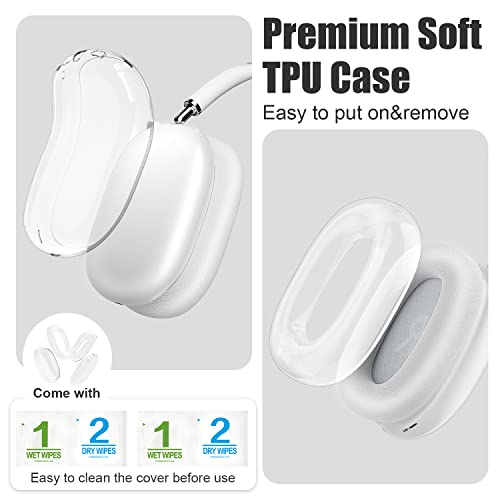 VICHYIE ケース AirPods Max対応カバー、イヤーパッドカバー付き、柔らかいTPU透明ケース傷防止、クリアカバー防塵、ヘッドホン用保護カバー (透明)
