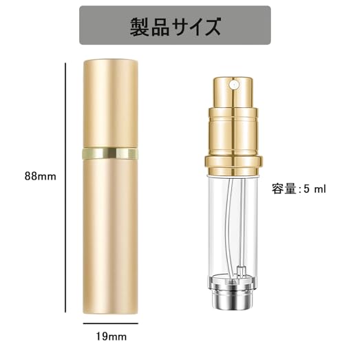 アトマイザー スプレー ワンタッチ補充 持ち運び便利 詰め替え ボトル 5ml 底部充填 香水用 容器 男女兼用 (ゴールド)